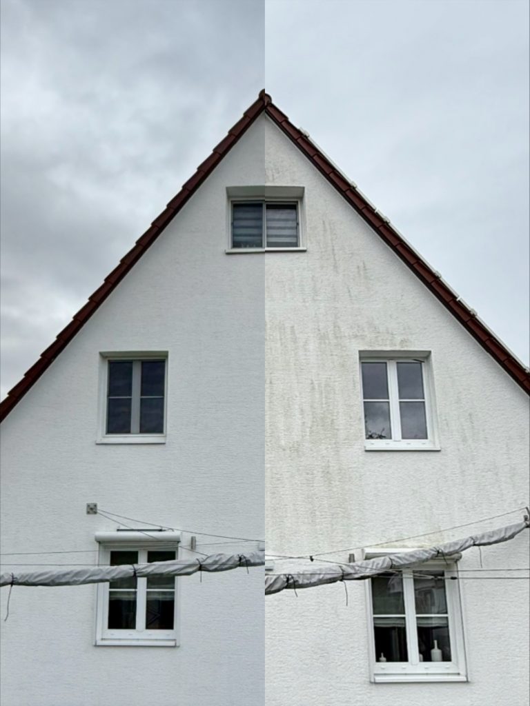 Unsere Fassadenreinigung sorgt für ein makelloses Erscheinungsbild Ihrer Immobilie, selbst bei hartnäckigem Schmutz.